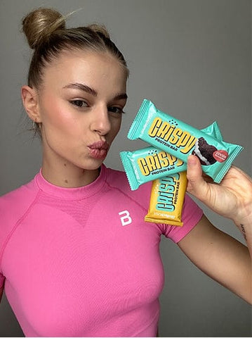Experience the pure, sweet joy of the Crispy Protein Bar and add extra protein to your varied and balanced diet. You can have a bar before and after training sessions, on the go, in weekend hikes – or even between two meetings in the office!